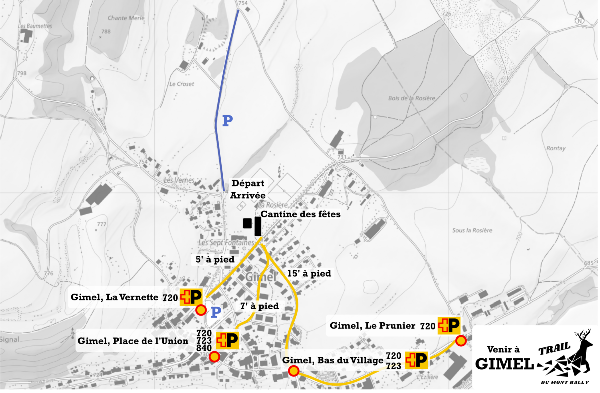 - En voiture : parkings à 300 m du départ